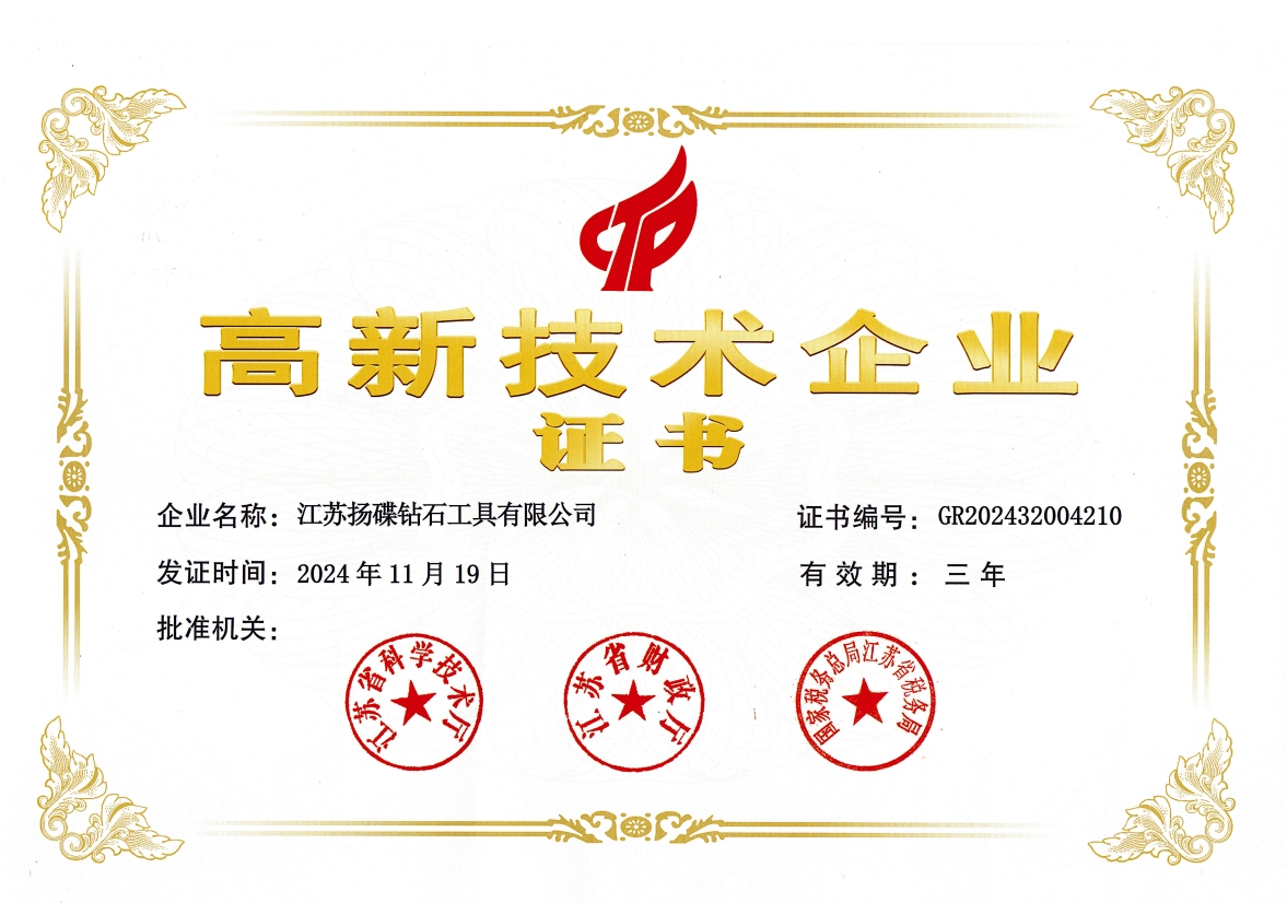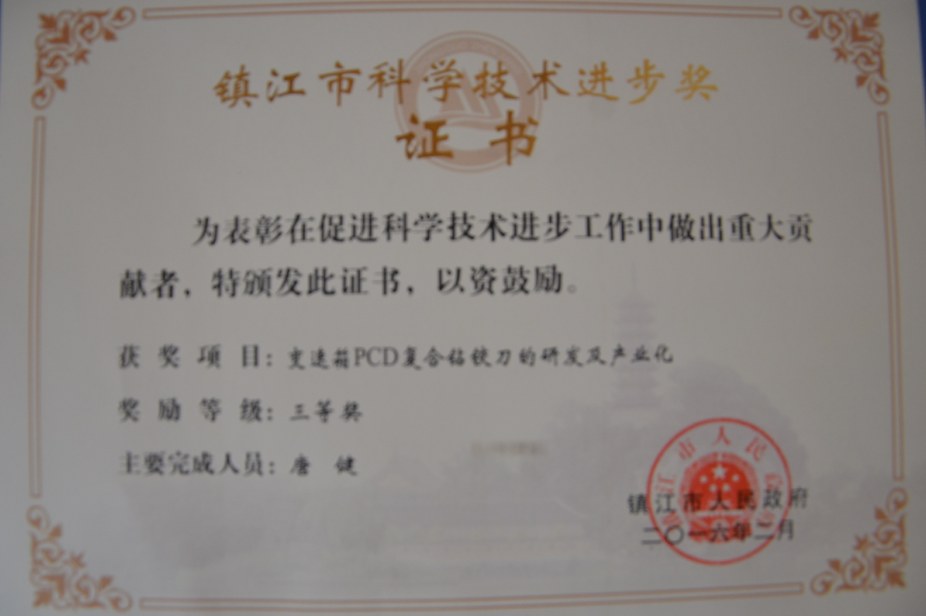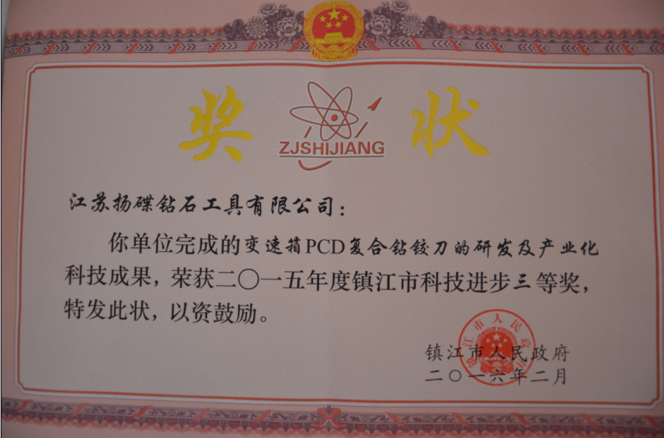 多年來,企業(yè)通過ISO9001國(guó)際質(zhì)量體系認(rèn)證,被中國(guó)中輕產(chǎn)品質(zhì)保中心授予“全國(guó)金剛石制造行業(yè)質(zhì)量放心滿意單位”,獲得江蘇省高新技術(shù)企業(yè)稱號(hào),榮獲江蘇省小巨人稱號(hào),變速箱PCD復(fù)合鉆鉸刀獲省高新技術(shù)產(chǎn)品等等。